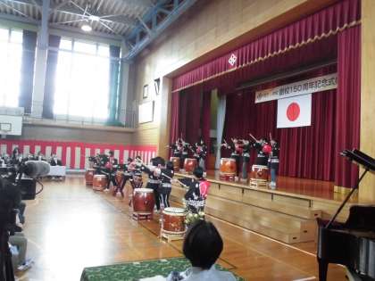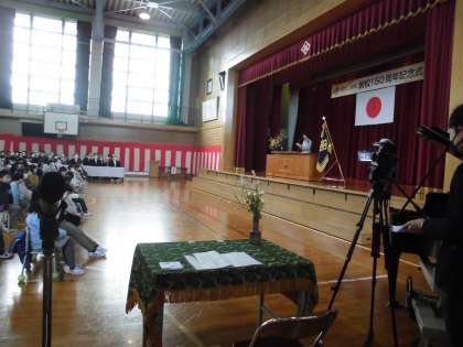10時より創校150周年記念式典を行いました。招待者、地域の方、保護者、児童ら300人以上の方々に参加していただきました。