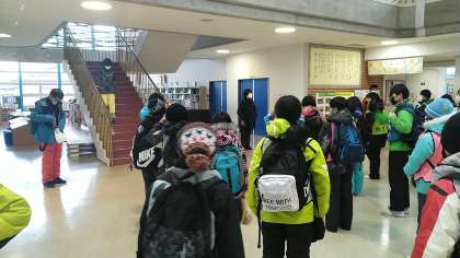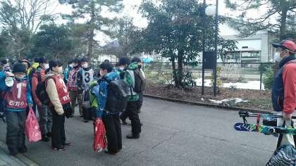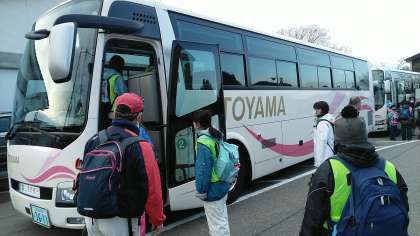 5・6年生がスキー学習のため学校を出発しました。