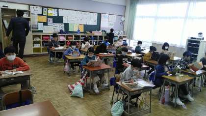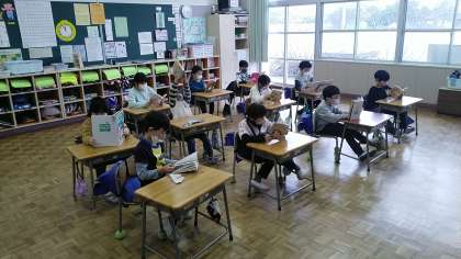 今日は、4年生、1年生、2年生教室の読書タイムの様子です。