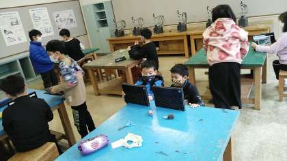 4年生の1時間目は、図画工作科の学習でした。1学期につくった不思議な生きものをクロームブックで連続撮影して動くアニメーションづくりをしました。動く映像ができると、直ぐに友達に見せていました。