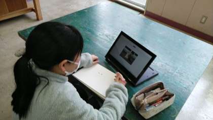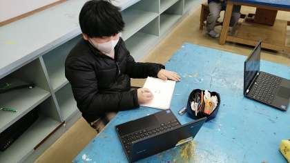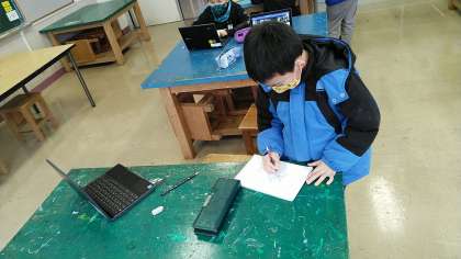 4年生の1時間目は、図画工作科の学習でした。三学期の活動の振り返りをしたあと、スケッチブックに「いきものの絵」を描きました。