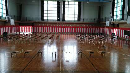 会場の準備が整いました。いよいよ明日は入学式です。8名のみなさんに会えるのを楽しみにしています。