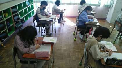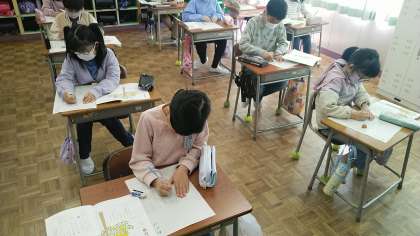 3年生の1時間目は、国語の学習でした。「わかば」という詩を視写して感想を書いていました。