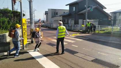 今日から、地域の方々による児童の下校時の見守り活動が始まりました。自治振興会や長寿会のみなさんのおかげで見守り活動が復活しました。これからよろしくお願いいたします。