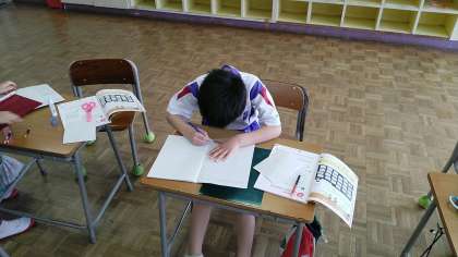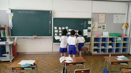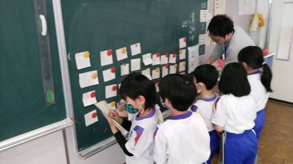 2年生の1時間目は、算数の学習でした。みんなのすきな季節やたべもの等を調べてグラフにしていました。