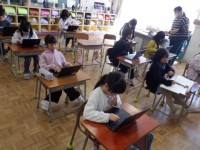 4月13日(木) 2年生 今日の授業風景(よいしょ、よいしょ。)
