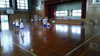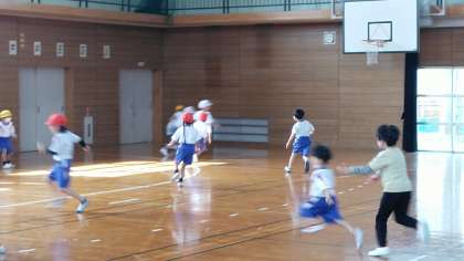 1・2年生の2時間目は、体育の学習でした。体育館でバナナ鬼ごっこをしていました。