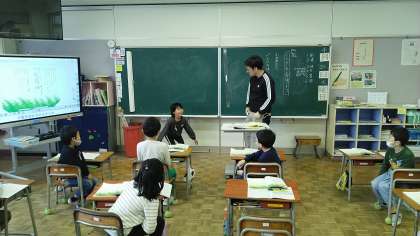 2年生の1時間目は、国語の学習でした。「ゆれるゆれる」や「とける」、「ふんばる」等を身体で表現していました。