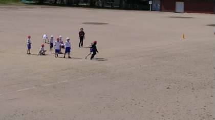 4年生の2時間目は、体育の学習でした。グラウンドでリレーをしていました。