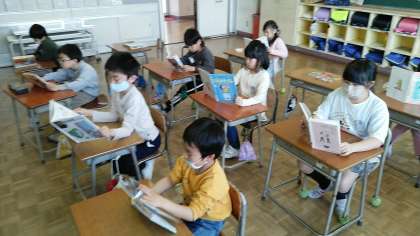 今日の読書タイムは、3年生教室と2年生教室と1年生教室の様子です。