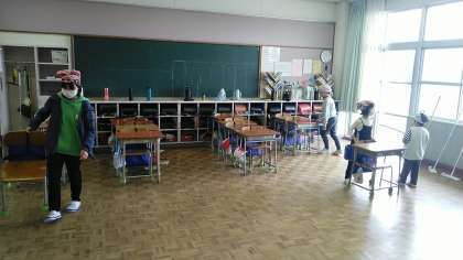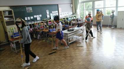 今日から縦割り班ごとの掃除が始まりました。いろいろな所で、上級生が下級生に優しく教えているシーンが見られました。
