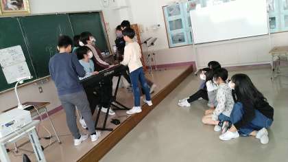 6年生の6時間目は、運動会の応援の練習でした。相談しながら応援の細部について案を出し合っていました。