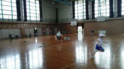 5年生の6時間目は、体育の学習でした。体育館で運動会の巧緻走の練習をしていました。まだ部分的な練習なので、巧ち走の全体がどうなるのかが楽しみです。