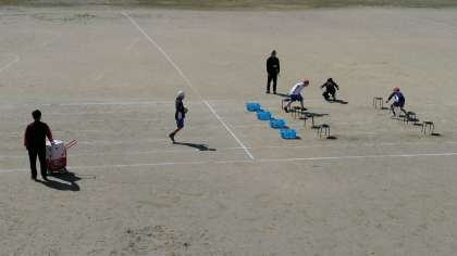 5・6年生の1時間目は、体育の学習でした。グラウンドで運動会の巧緻走の練習をしていました。レースの全体像がだいぶん見えてきました。