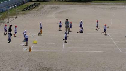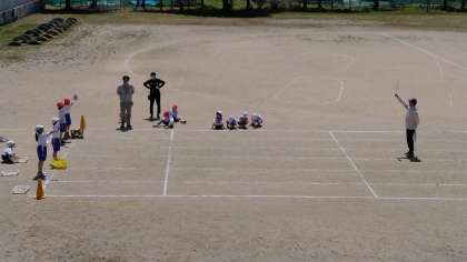 1・2年生の3時間目は、体育の学習でした。グラウンドで運動会の巧緻走の練習をしていました。今日は、校長先生にも参加してもらい、1・2年生の巧緻走もレースの全体像がはっきりしてきました。