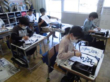 運動会の練習真っ最中ではありますが、5年生は、とても落ち着いて「成長」という字を書いていました。まさに「成長」している子供たちです。