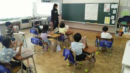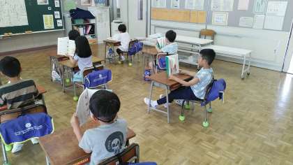 1年生の2時間目は、国語の学習でした。「かきとかぎ」のお話を読んでいました。先生の後に続いて、声をそろえて読んでいました。