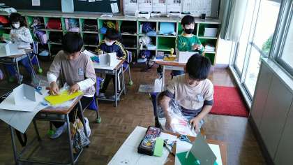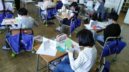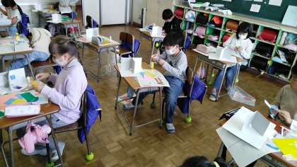 3年生の3時間目は、図画工作科の学習でした。いよいよくるくるする世界(ランド)をつくり始めていました。