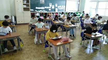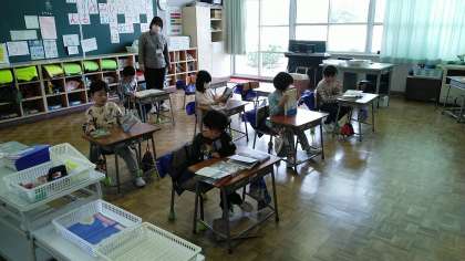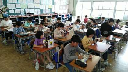 今日の読書タイムの様子です。4年生と1年生と3年生教室の様子です。