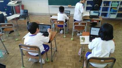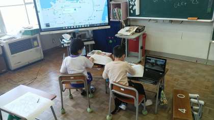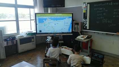 2年生の4時間目は、生活科の学習でした。四方地区で行ってみたいところをクロームブックや地図などを見ながら探していました。