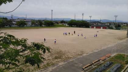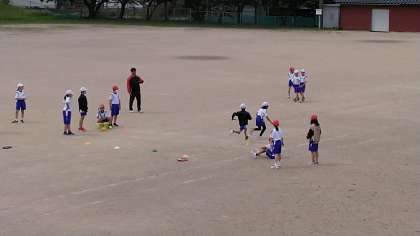 5年生の1時間目は、体育の学習でした。グラウンドでリレーのバトンパスの練習をしていました。