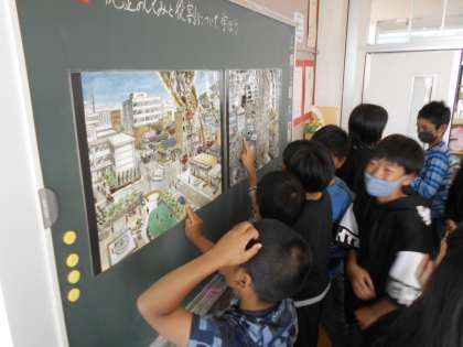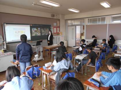 税務局から講師を招いて、租税教室を行ないました。社会科で習った税金の仕組みや役割について、理解を深めました。