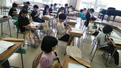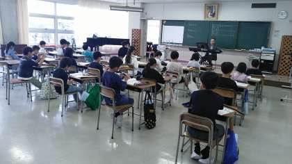 4年生の4時間目は、音楽の学習でした。音楽室で伴奏に合わせてリコーダーを吹いていました。リコーダーの音の重なりがとてもすてきでした。
