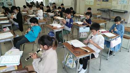 5月26日(金) 4年生 今日の授業風景(リコーダー)