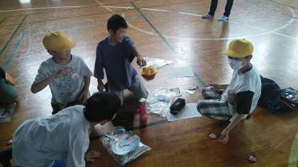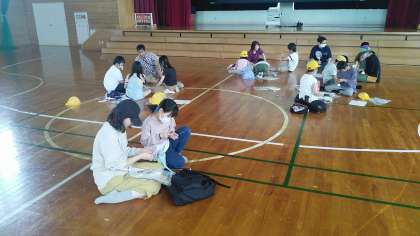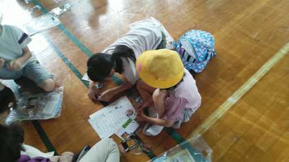 4〜6年生は、DVDを見たあと、親子でふれあいながら反射材づくりをしました。