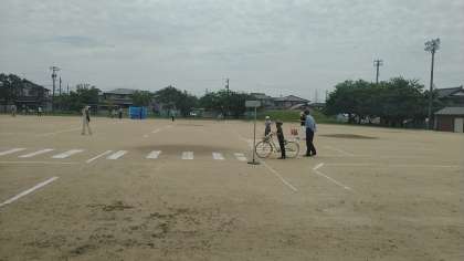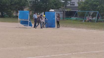 4〜6年生は、グラウンドで自転車の乗り方を学びました。