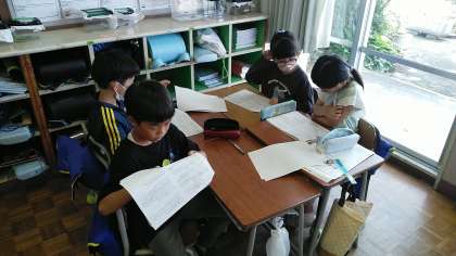 3年生の3時間目は、総合的な学習の時間でした。みんなで調べたことを発表する担当を決めて練習していました。
