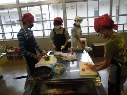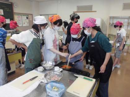 6年生の5・6時間目は家庭科の調理実習で、いろどり炒めに挑戦しました。安全に包丁や火を扱い、グループのみんなと協力して取り組みました。