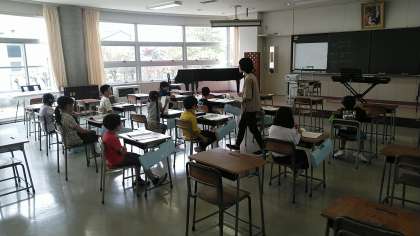 2年生の4時間目は、音楽の学習でした。ミッキーマウスマーチのリズムについて考えていました。