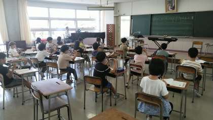 3年生の2時間目は、音楽の学習でした。音楽室でピアノの伴奏にあわせてリコーダーをふいていました。