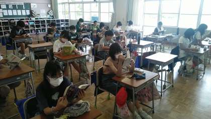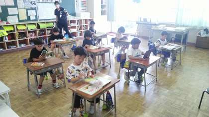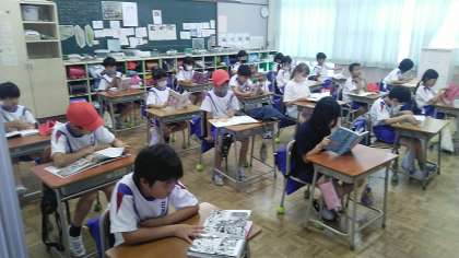 今日の読書タイムの様子は、1年生教室と6年先教室と3年生教室の様子です。
