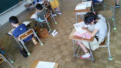 2年生の2時間目は、算数の学習でした。たくさんあるクリップの数を10のまとまりをつくって数えていました。10のまとまりが23 残りのクリップが5 全部で235クリップがありました。