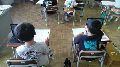 2年生の2時間目は、図画工作科の学習でした。ふしぎなたまごのアイディアがまとまって、いよいよ大きな紙にかきはじめていました。