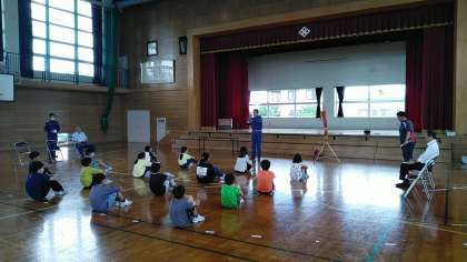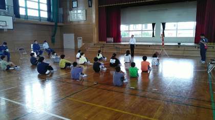 5年生のBFCバッジ授与式&防火防災教室がありました。まずは、校長先生と和合出張所所長さんと消防団四方分団長さんのお話を聞きました。