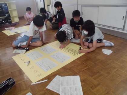 3年生の2時間目は、総合的な学習の時間でした。お世話になっている先生方のすてきなところを模造紙にまとめていました。グループのみんなと協力して進めています。