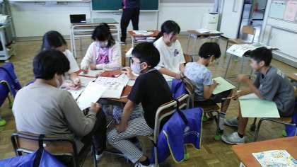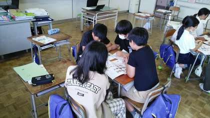 5年生の4時間目は、家庭科の学習でした。ゆでやさいサラダをつくる計画をグループごとに立てていました。