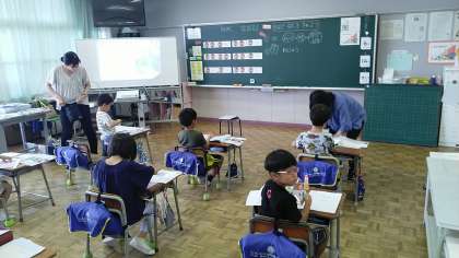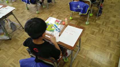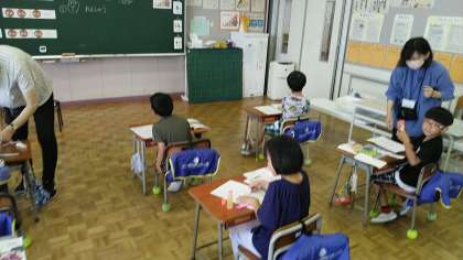 1年生の2時間目は、音楽の学習でした。自分の選んだリズムを手をたたいて確かめていました。
