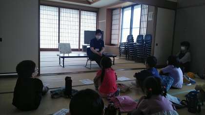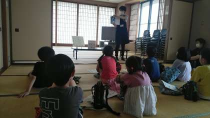 ストーリーテリングで穴の話を聞いたり、四方にちなんで漁港のお話や海の生き物が主人公のお話の読み聞かせをしてもらったりしました。