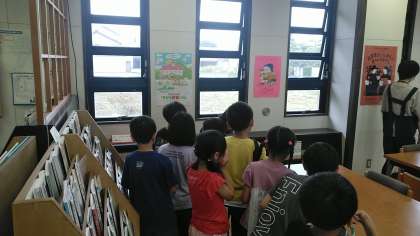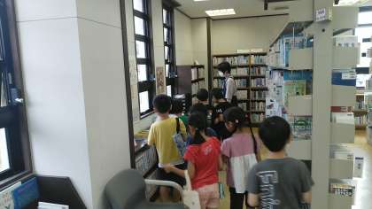 図書館に移動して、特設コーナーや本の選び方について説明してもらいました。