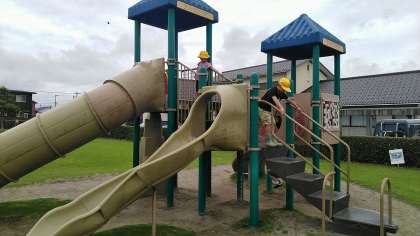 お礼を言って、地区センターを出ました。そのあと、向かいの公園で少し遊びました。