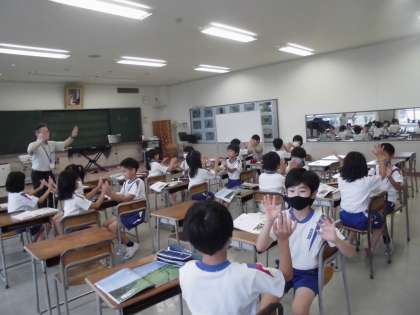 3年生の3時間目は、音楽の学習でした。「茶つみ」の歌に合わせて、手拍子をして楽しみました。