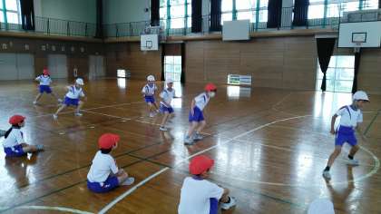 3年生の4時間目は、体育の学習でした。体育館で反復横とびや上体起こしをしていました。