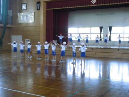 3年生の5時間目は、体育の学習でした。ポケットモンスターの音楽に合わせてダンスをしています。今日は、隊形移動や細かな動きを確認していました。