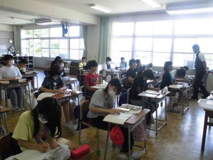 6年生の5時間目は、理科の学習でした。日光とでんぷんの関係について、実験で確かめる準備をしていました。ノートに一生懸命にまとめる6年生です。