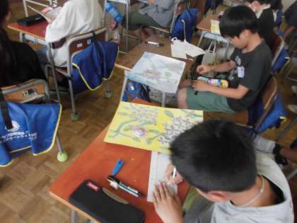 6月22日(木)4年生 今日の授業風景(アジサイの絵)