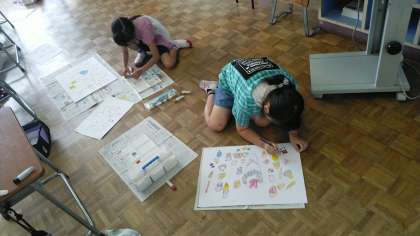 2年生の1・2時間目は、図画工作科の学習でした。ふしぎなたまごの世界観の絵に水彩で色を付けていました。